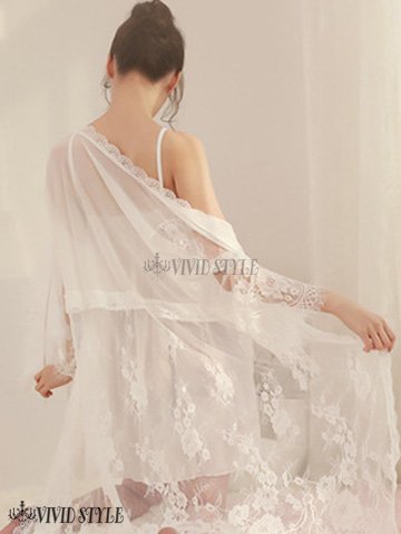 繊細な花柄レースのガウンをセットにしたエレガントで美しい純白のベビードール(BABYDOLL)。ガウンの裾や袖口に敢えてフリンジ部分を残したレースのスカラップを活かすことで、シンプルな仕立てでありながら上品な華やかさを感じさせるアイテムとなっています。素肌に直接触れる部分にはストレッチメッシュをメインで使用し、動きに合わせてしっかりと伸び縮みするストレッチ性と肌当たりの良い柔らかな生地感で、ストレスを全く感じさせない快適な着心地に仕上げました。ベビードールの肩紐はアジャスター付きですので、お好みに合わせて長さ調節していただけます。