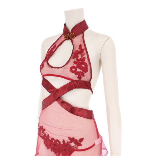 花柄チュールレースが高級感を漂わせる大人のベビードール(BABYDOLL)。花モチーフのチュールレースが素肌に映えるシースルー感たっぷりのランジェリー。しっとりと大人のアジアンテイストに仕立てました。ネックのチャイナドレス風のあしらいやフロントでクロスするサテンがより艶めかしさを増します。バックファスナーで着脱もカンタン。同生地のTバックショーツも付属しています。