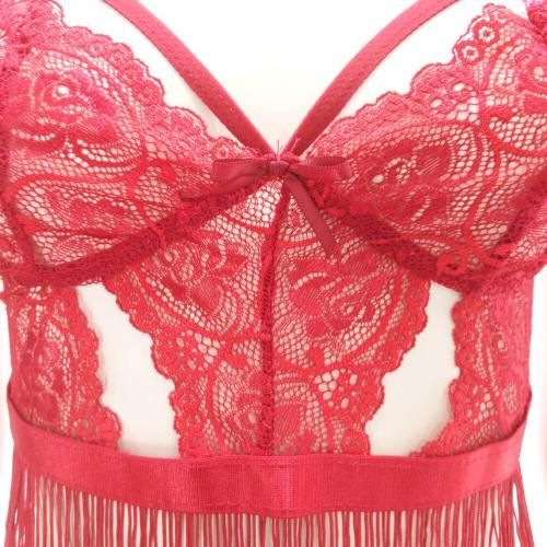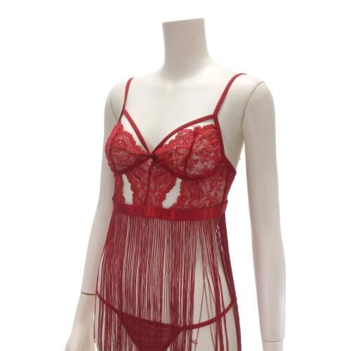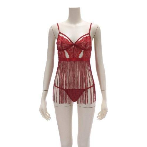 女性の繊細な美しさを引き出すフリンジが魅力のベビードール(BABYDOLL)。レースから覗く素肌が映えるランジェリー。ほどよい伸縮性のメッシュレースに、動くたび揺れるフリンジを合わせることで大人の色気を放つ美しいベビードールに仕立てました。胸元はハーフカップにストリングでアレンジ。肩紐はアジャスター付きでサイズ調整可能です。セットにはメッシュ地のTバックショーツが付属します。