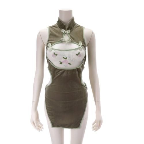 ベロア生地で仕上げたチャイナ服風ベビードール エッチなランジェリー通販