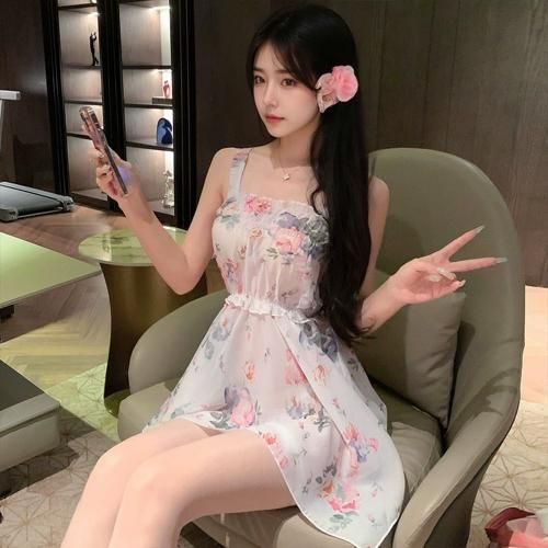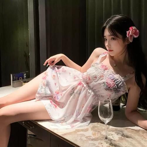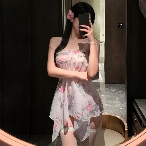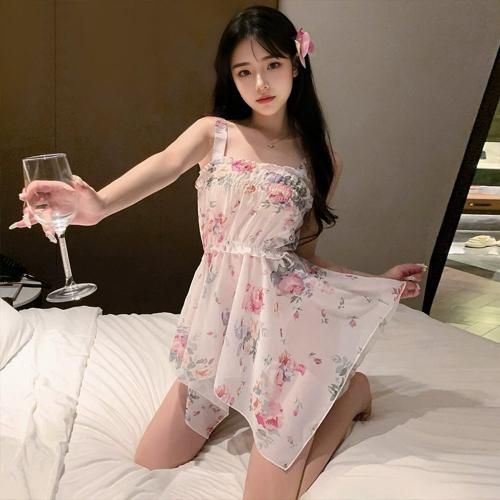 ふんわり花柄がフェアリー感漂うベビードール(BABYDOLL)。胸元とウエストにゴムギャザーを使用することでバストからウエスト、ヒップにかけて女性らしいボディラインを作ります。また、透け感のある柔らかな色合いの花柄にふんわりボリュームあるスカートがまるでフェアリーのよう☆裾をなびかせ優美にパートナーを誘惑。