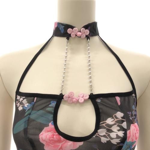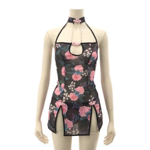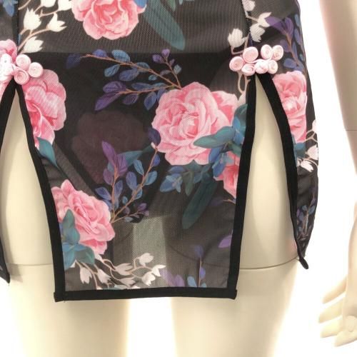 ピンクローズが彩るシースルーチャイナドレス風ベビードール セクシー ランジェリー 人気