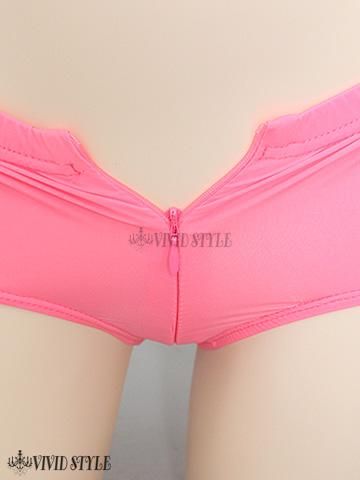 フロントからバックまで完全にオープンにできちゃう衝撃的なオープンショーツ(T-BACK・SHORTS)。一見なんの変哲もないノーマルタイプのショーツのようですが、ウエストを繋ぐようにあしらわれたファスナーは飾りではなく実際にオープンすることが出来る破壊力抜群のセクシーアイテムです。ファスナーの開き具合によって素肌の見え方も変わる遊び心たっぷりのデザインに仕立てました。伸縮性が高くしっとりとした肌触りの良いストレッチ生地を使用することで、極上の肌触りの快適な穿き心地です。