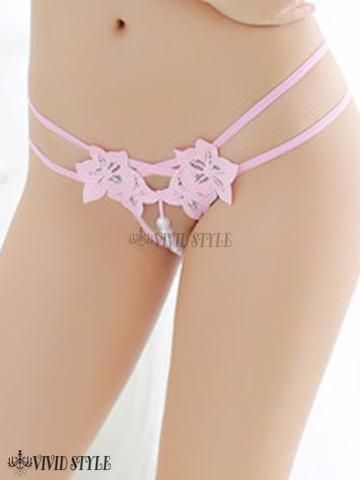 刺繍モチーフとストリングだけで作られた非常にセクシーなパール付きのオープンショーツ(T-BACK・SHORTS)。肌を覆う面積が極端に少なく露骨にエロティックな印象となりがちなオールストリングのショーツながら、フロント穿き口部分に花柄の刺繍モチーフをあしらうことで女性らしいエレガントさをプラス。クロッチ部分に渡した大粒のパールは前後に移動させることが可能ですので、お好みの位置に調整してご使用下さい。ストリングには伸縮性抜群の素材を使用していますので締め付け感の少ない快適な履き心地です。