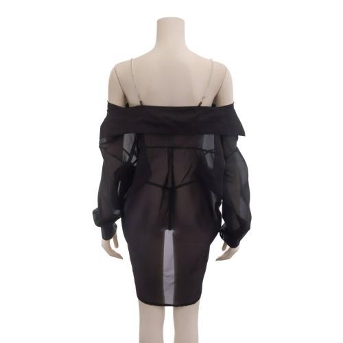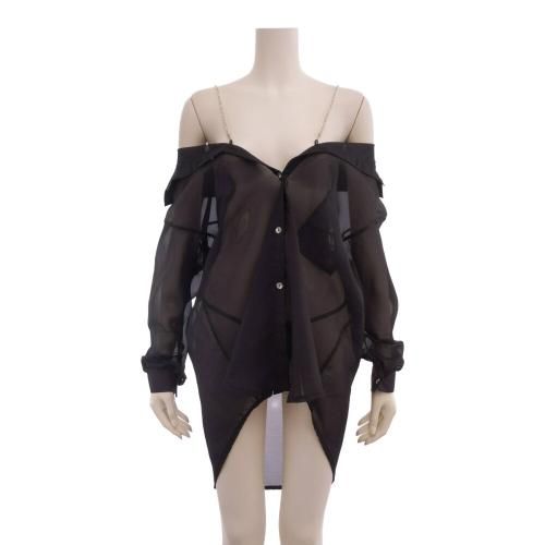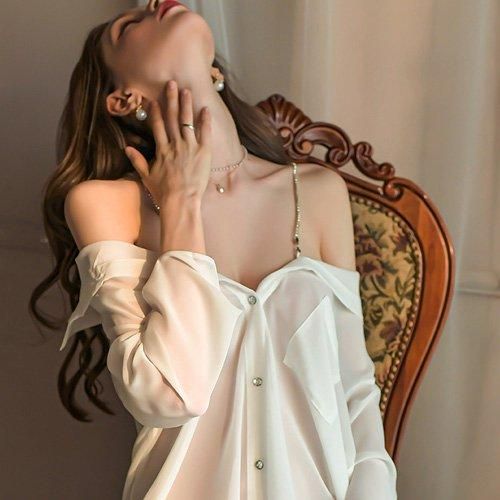 ゆるシルエットで抜け感を演出する彼シャツ風ルームウェア(ROOMWEAR)。ほどよくビッグサイズなシャツブラウスにビジューストラップを仕込んだリッチテイストのリラックスウェア。ストラップで肩を落としてゆるく着こなせばデコルテで揺れるビジューが輝くラグジュアリーな雰囲気で大人の休暇にピッタリな一枚に♪お尻まですっぽり隠れる丈感は気になる体型カバーも出来てオーバーサイズでゆとりあるシルエットは彼シャツに包まれる可愛い大人女子を演出します。