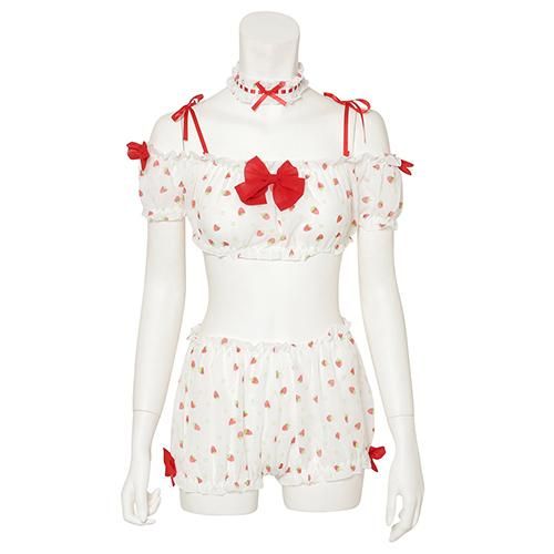 シフォンにイチゴ柄が甘くキュートなパジャマ セクシー ランジェリー 人気
