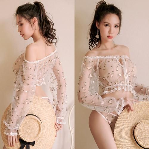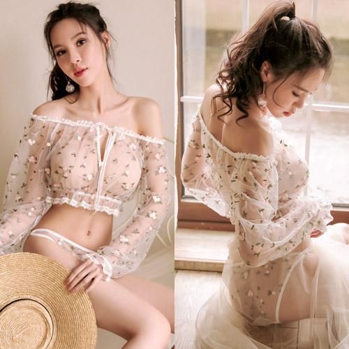 素肌にふんわり小花が浮かぶガーリーセクシーなパジャマ アダルト ランジェリー 下着