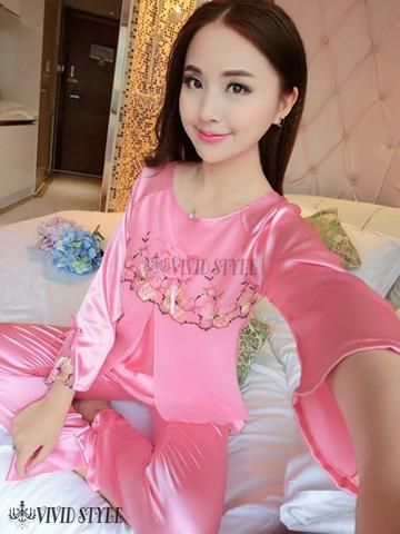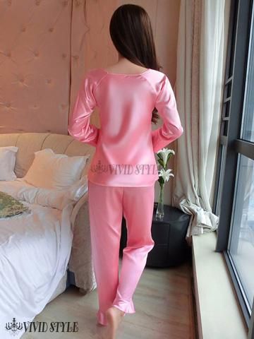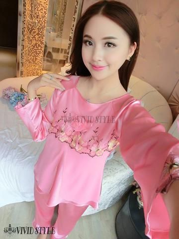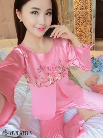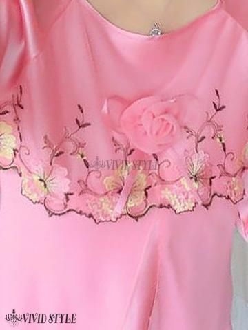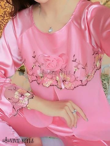 胸元に巻きバラのコサージュとリボンをあしらったラグランスリーブのパジャマ コスプレ エロ