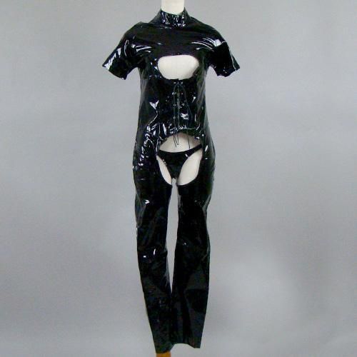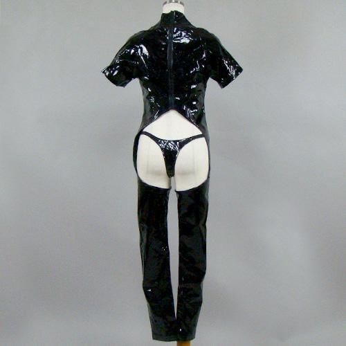 艶のある生地と大胆すぎる露出がセクシーを極めたボディスーツ(BODYSUIT)。隠す気のない露になった素肌を艶のあるエナメル生地がより一層色気を引き立たせるとてもセクシーなデザインです。バックにジッパーをあしらい着脱しやすいように仕立てました。フロントの編み上げで若干サイズを調節できます。どこから見ても露になった素肌がパートナーの熱い視線を集中させること間違いなし♪ショーツはボディースーツと同じ共布を使用し、サイドはゴムで仕立て伸縮のあるセクシーなTバックショーツです。