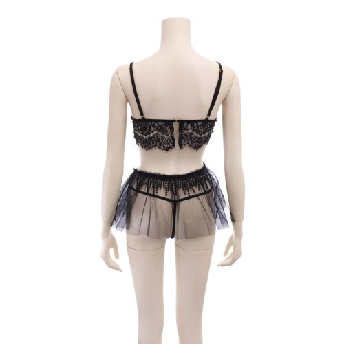 ウェディングドレスを思わせる華やかでアーティスティックなブラ・ショーツセット(BRA・SHORTS SET)。レースとメッシュ地をふんだんに使った表情豊かなデザインで、無垢な花嫁のような清らかさの中に透ける素材特有のセンシュアルないでたちで、ベールに包まれた姿が妖艶な雰囲気を漂わせるランジェリーセット。総レースのブラ・ショーツ、メッシュ仕立てのペチコートは締めつけすぎず快適性を持ったランジェリーに仕上がっています。