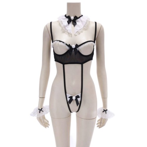 これ以上ないほどの大胆デザインがまぶしいメイド服風セクシーコスプレ(SEXYCOSPLAY)。常識をおおいに覆す、これはもう反則レベルのコスチューム♪間違いなくパートナーの興味を誘うアイテムです。メイドさんと察するのは襟元と帽子のみ。あとはバスト、クロッチを含め、ほぼオープンスタイルで構成。付属。アイテムも充実でとことん楽しめちゃいそう。