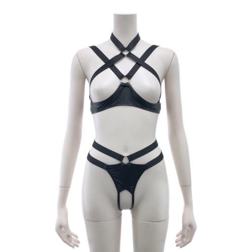 ヌードなバストを際立たせるマットな質感がスパイシーなブラ・ショーツセット(BRA・SHORTS SET)。バストを強調したブラがエロティックで、マットなPUレザーの光沢としっとりとした質感が体を這い拘束感を感じるディテール。ショーツも大胆なオープンクロッチなので世界観そのままに脱ぐことなく楽しめます☆太めのゴムで窮屈感や痛みを軽減し、ブラはホックレスのため頭から被るタイプ。また、ブラの長さや幅はアジャスターでサイズ調整可能なのでボディにぴったりフィットします。濃厚時間を五感全てで楽しんで♪