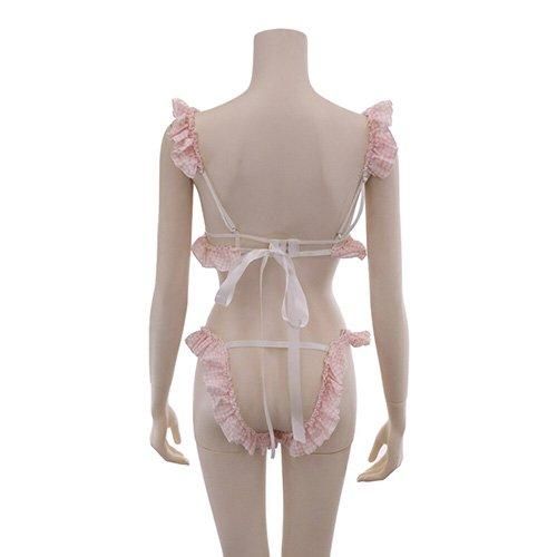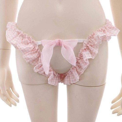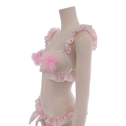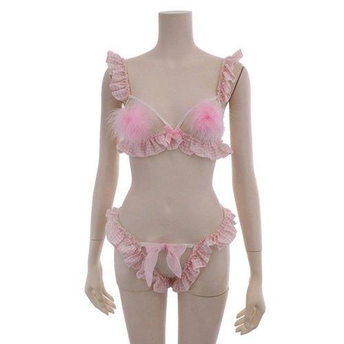 チェック柄がキュートで大胆デザインのブラ・ショーツセット(BRA・SHORTS SET)。フリルのチェック柄生地が可愛いブラ・ショーツセット。そのキュートで小悪魔な印象からは想像つかないオープンバスト、オープンクロッチ&ヒップという大胆なデザインにパートナーさんもノックアウト♪ふわふわで可愛いピンクの二プレスとリボンもついてさらにセクシー可愛く迫っちゃおう。伸縮性のあるストリングを使い、ブラホックは2列3段階調節でサイズ調整ができます。