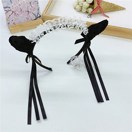 フリルレースと小鈴で可愛くアレンジした猫耳メイド風のカチューシャ(KATYUSHA)。猫耳部分はドットのチュールレースをあしらい小さな鈴とサテンリボンにレースとの掛け合わせがキュートさを演出します。いつものコーディネートに合わせるだけでコスプレ気分を楽しめるアイテムです♪