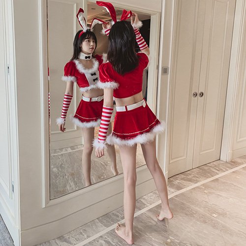 キュートなものだけを集めた乙女心をくすぐるサンタガール風セクシーコスプレ(SEXYCOSPLAY)。うさ耳にリボンにボーダーにファーと女の子が大好きなものを集めてデザインすることで、最高に可愛らしいサンタガールに仕上がりました。上下ともに短め丈なのもセクシーで、思わず抱きしめたくなるほどキュート♪甘い誘惑で大好きな彼を魅了しちゃお!