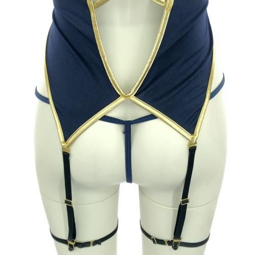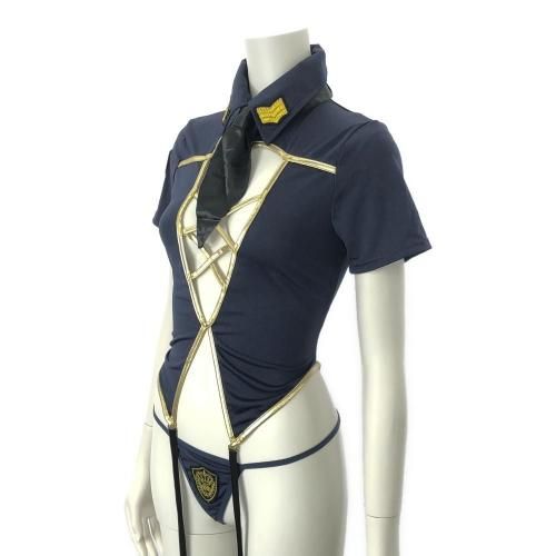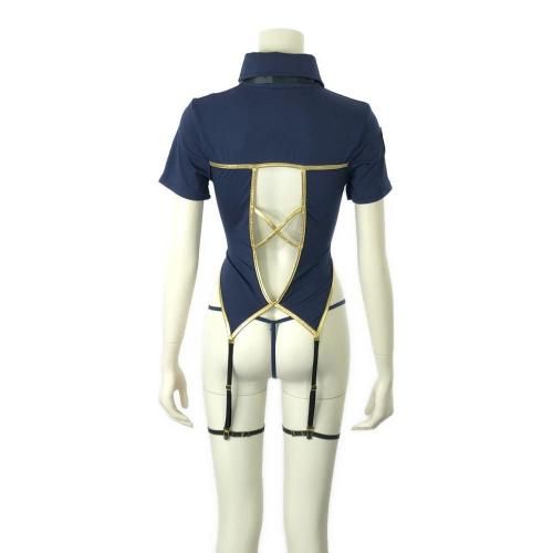 厳粛な姿が壊れていくボンテージ要素を含ませた婦人警官風コスプレ(COSPLAY) 。ポリスロゴの帽子にガーターベルトがクールで何処か色っぽい婦人警官風コス。ネイビーにゴールドラインが肌を際立たせ伸縮性のある生地がボディラインを強調し、フロントのレースアップからはセクシーに谷間を露出。バックスタイルも同様に肌を露出し、弓なりに反った背中から腰に掛けてのラインがエロティックで淫らに壊れていくパートナーから目が離せません。