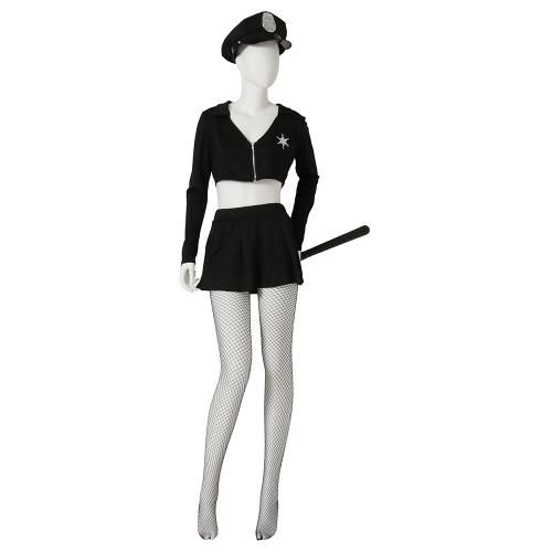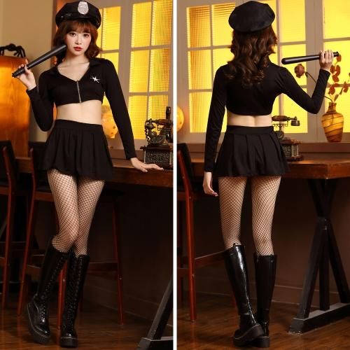 アイテム充実で圧巻のポリスウーマン風コスプレ(COSPLAY)。しっとり柔らかなストレッチ素材を使用したショート丈のトップスとスカートのコスチューム。超ミニ丈のスカート動くたび揺れて、見えそうで見えないギリギリのラインを楽しめるデザインに。さらにキャップ、警棒などポリスアイテムで本格的に楽しめちゃうセットです。お色気たっぷりのポリスウーマンになりきって、パートナーを現行犯逮捕しちゃうぞ♪