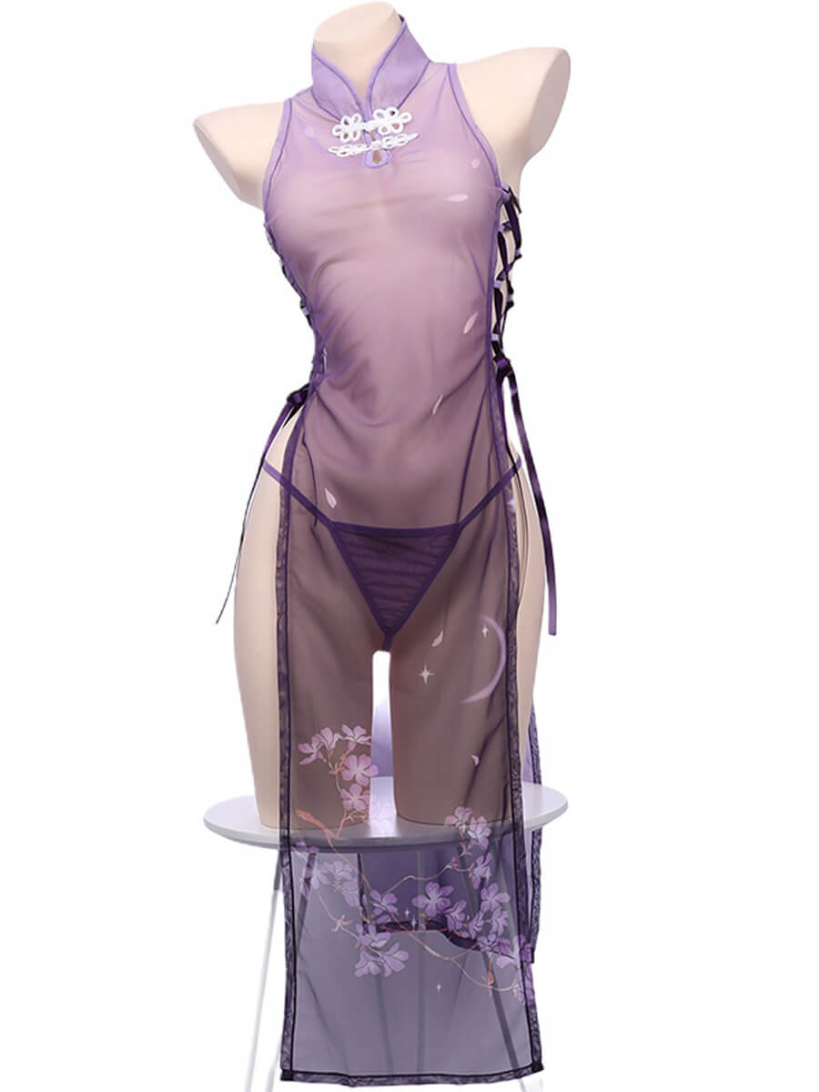 デザイン:セクシーな透明チャイナドレス ランジェリーは、シアーメッシュ、伝統的な中国のバックルカラー、花柄プリント、サイドスリットヘムライン、レースアップディテールでデザインされています。 胸元を締め付けない細身のブラレットデザインで、ミニドレスは体の曲線にフィットします。 あなたをより魅力的でチャーミング、ファッショナブルでシックに見せます。