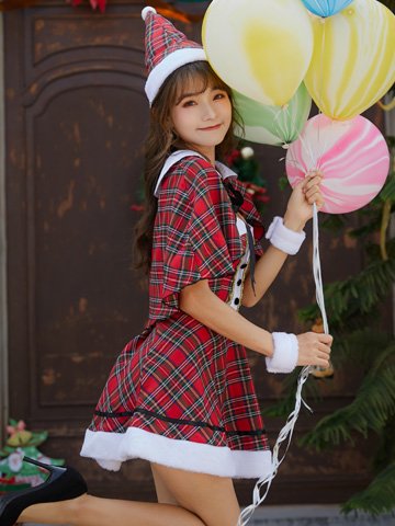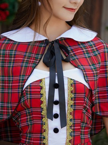 ケープとのセットアップがファッショナブルなタータンチェックのサンタガール風セクシーコスプレ(SEXYCOSPLAY)。襟付きでふわりと羽織れるケープは、キュートな見た目はもちろん寒さ対策にも気になる二の腕隠しにもなる万能アイテムです♪襟とボタン付きのベアワンピはクラシック感があり、ただの赤いサンタよりもガーリーで上品な雰囲気を演出して華やかなオーラを振りまく1着です。