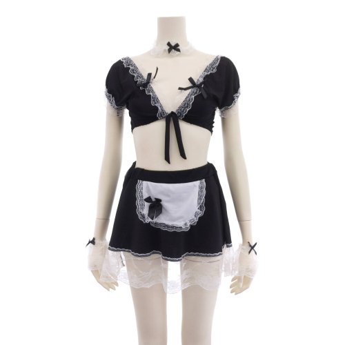 レースのあしらいがキュートなセパレート型メイド風セクシーコスプレ(SEXYCOSPLAY)。大きくカットされたバスト部分は大胆かつセクシーさ満点で、少し丸みのある袖も腕を華奢な印象に演出します。スカートはウエスト部分に平ゴムを使用し着苦しさを軽減し、エプロン付きでメイドさんの雰囲気たっぷり♪レースとリボンがポイントの繊細なデザインが可愛らしく、カチューシャやチョーカーなど気分が盛り上がるアイテムも満載のセットです。