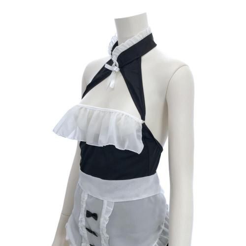 チラ見えバストが興奮度を高めコーデ次第で表情を変えるメイド風コスプレ(COSPLAY)。チャイナ服風デザインに、チュールからチラチラと見え隠れするバストが興奮度を高め、エプロンを外せばボディラインを強調したセクシーテディに早変わり。クロッチはスナップボタンで着脱がしやすく、バックスタイルはリボンのラインが背中を這う姿が可愛い。前も後ろもセクシー要素たっぷりなメイドさんに特別なおねだりをしたくなるコスプレです♪