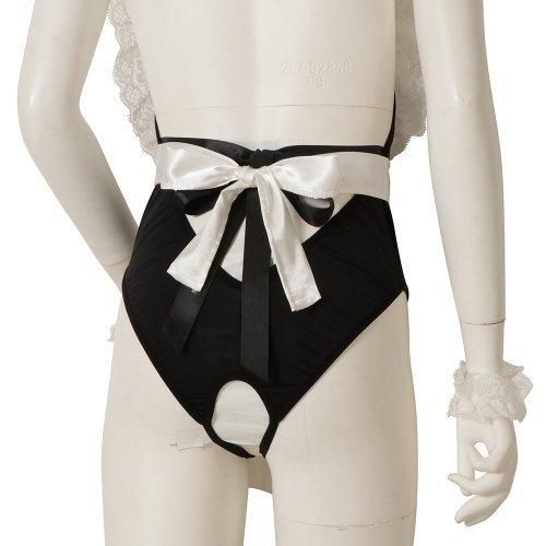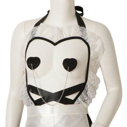 サテンリボン使いが可愛さを演出し解放感あふれるセクシーなメイドさん風コスプレ(COSPLAY)。バストやクロッチを露出し大胆に攻めたメイドさん風のコスプレです。メイドさん風を象徴するエプロンはサテン生地にレースが付いてキュートな印象に。オープンバストにはチェーンで繋がったブラックカラーのビーズが輝くハート型のニプレスを着用することでほんのり過激さも味わえます。エプロンを結べばバックスタイルにも華がありつつオープンクロッチが視線を集めます♪