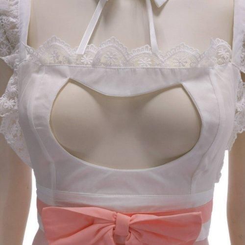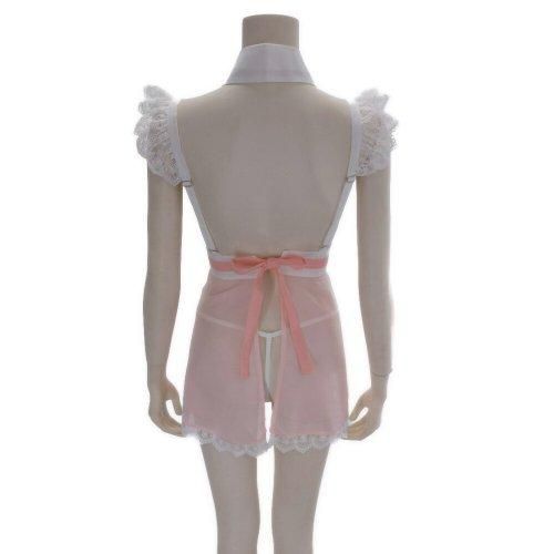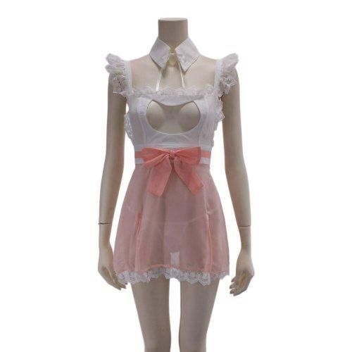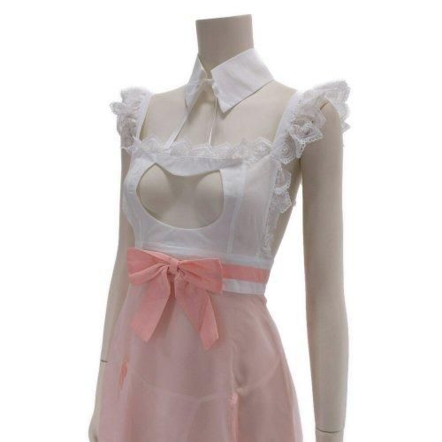 メリハリデザインがキュートで大胆なメイド風コスプレ(COSPLAY)。女の子らしいピンクにフリルがかわいいメイドさん風コスチューム。キリっとした衿の下は大きくカットされた胸元アピールデザインに。透け感のある生地とショート丈でヒップもチラ見せしちゃいましょう。肩紐はアジャスター調節可能です。
