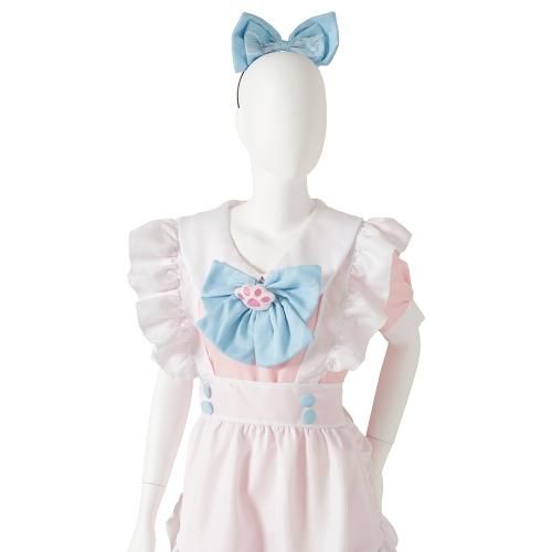 | セット内容 | ワンピース、エプロン、カチューシャ、ニーハイストッキング、リボン、肉球ブローチ 6点 |