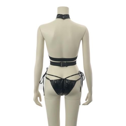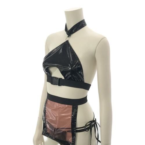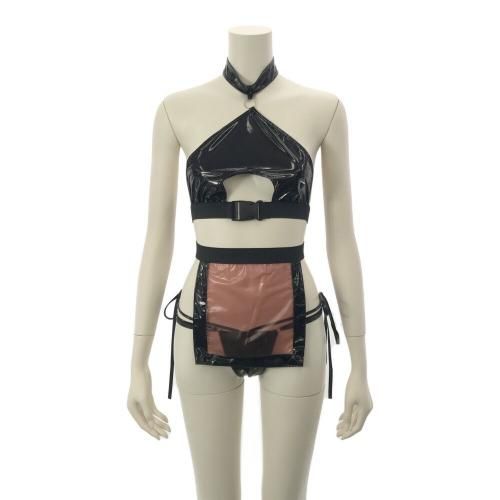 服従心を刺激するメイドボンデージ風コスプレ(COSPLAY)。ボディに沿うよう身に着けたフェイクレザーのブラ&ショーツに、シースルーエプロンがセクシーなメイドコスプレ。フェティッシュには堪らないちょっぴりハードでアブノーマルながら、服従心をも刺激するシチュエーションが想像力を掻き立てる♪ブラアンダーとエプロンはサイドリリースバックルで着脱し、ショーツは拘束感のある長めのストリング。
