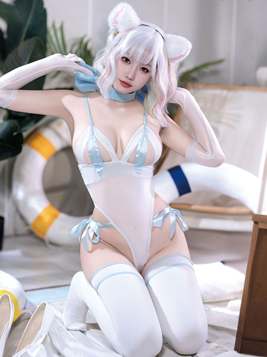 パッケージ内容:猫の衣装: ボディスーツ x 1、ストッキング x 1、チョーカー x 1、ヘッドピース x 1、尻尾 x 1。猫のフルセット: ボディスーツ x 1、ストッキング x 1、チョーカー x 1、ヘッドピース x 1、尻尾 x 1、手袋 x 2。