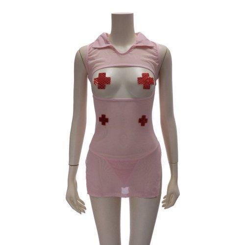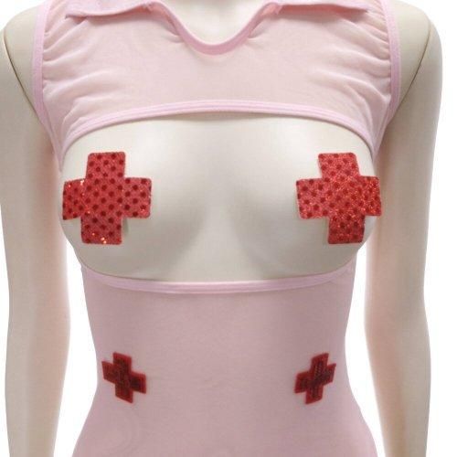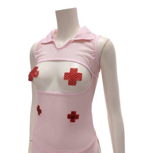 メッシュ生地越しに見える素肌とこぼれるバストが魅惑を発するナース風コスプレ(COSPLAY) 。透け感たっぷりのメッシュ生地を使い、注目を集めるバスト部分は大胆にオープンに猥りがわしく過激なデザイン。スカートはサイドスリットを入れて太ももの露出度をアップ。ヒップラインが見えてしまいそうな危うい着丈でドキドキ感を味わえそう。バストトップを隠せるニプレス付きで想像力を掻き立てる魅力あふれるナースコスに仕上げました!