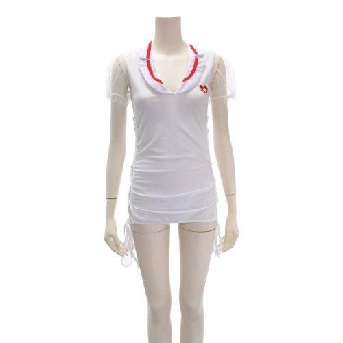 セクシーなレースアップで悩殺出来るナース風コスプレ(COSPLAY)。伸縮性のある滑らかな生地が心地よいナース風コスチューム。大きくカットされたサイドはレースアップで色っぽく肌魅せ。袖はメッシュ地のパフスリーブで可愛くアレンジ。ベース生地は若干の透け感があるので生地越しの素肌がセクシーです。ヒップラインぎりぎりの丈でTバックのヒップをチラ見せしちゃいましょう。