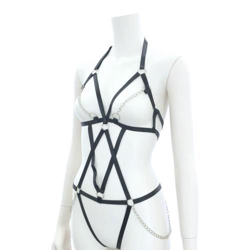 滑らかな肌にスパイスを利かせたストリングガーターランジェリー(GARTER LINGERIE)。バストや太もものポイントにシルバーチェーンをあしらうことで、美しさの中にもちょっぴりハードな要素をプラス。ストリングには平ゴムを使用し、程良い締め付け具合で肌を痛めにくく動きやすいのが嬉しいポイント。クロッチ部分はクロスしているので、ゴムを軽く引っ張ることで更に食い込み羞恥心に襲われるパートナーを眺めるのも堪らない♪