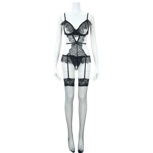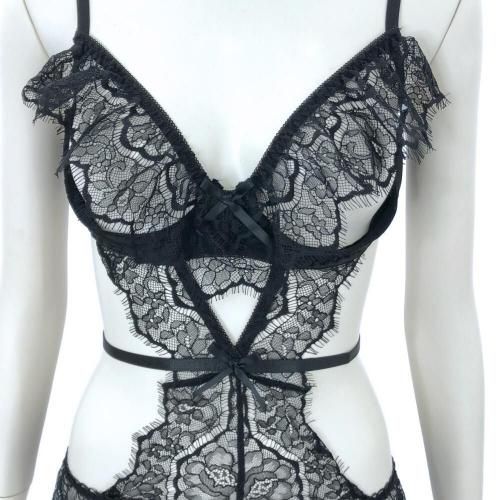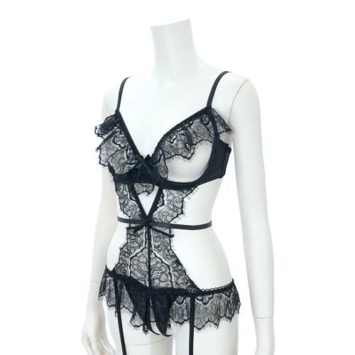 興奮を煽るオープン仕立てのガーターランジェリー(GARTER LINGERIE)。女性のカーヴィーなボディラインをセクシーに彩るレースとストリング使いのガーターランジェリーです。テディデザインのショーツ部分まで一体型で曝け出したオープン仕立てのバストやクロッチが色気たっぷりに演出。ウエストのストリングで視覚効果でウエスト周りをスッキリと見せてくれます。バックスタイルはTバック仕様にすることで解放感も抜群な上、レースアップが興味を誘うこと間違いなし。背中のホックは2列3段でガーターベルトは取り外し不可。お好みのニーハイストッキングで様々なコーディネートを楽しめます。
