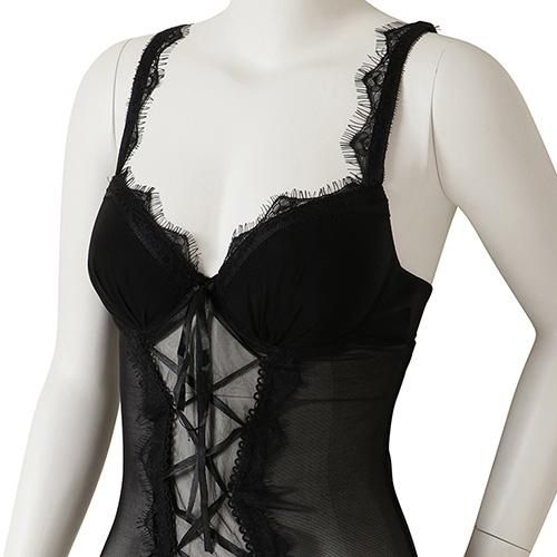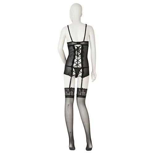異なるシースルー感と編み上げが色気漂うガーターランジェリー(GARTER LINGERIE)。センターと背中側に仕立てた編み上げとレース使いはセクシーさと可愛らしさを引き出し、セットの同じカラーのTバックショーツが透ける感じも艶っぽさをプラス。バストには下側に少し盛り上がった胸パッドが入り、ワイヤー入り構造で美バストをしっかりとキープ出来ます。バックスタイルから覗くヒップラインは透け感と相まって色っぽさを演出します。生地の伸縮も有り、編み上げで多少サイズ調節が可能、背中のホックは2列3段留めです。