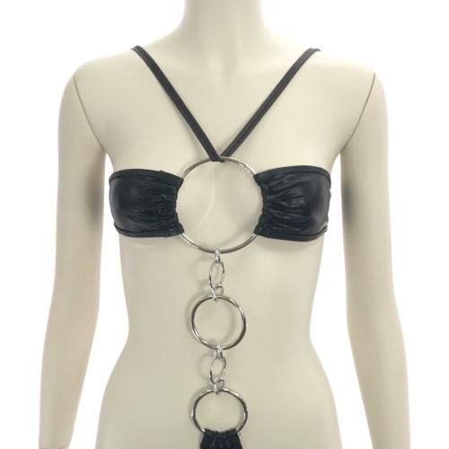 身体に食いこむパテントレザーがコケットリーなテディ(TEDDY)。パテントレザーの光沢感がクールで、極小面積と3連リングが目を惹くテディ。チューブトップブラに、ウエストからクロッチに食い込みながら身体を這い、胸元のリングに繋がれた拘束感のある大胆デザインは動くたびにクロッチ部分が刺激され、着る側も見る側も高揚感が高まる☆