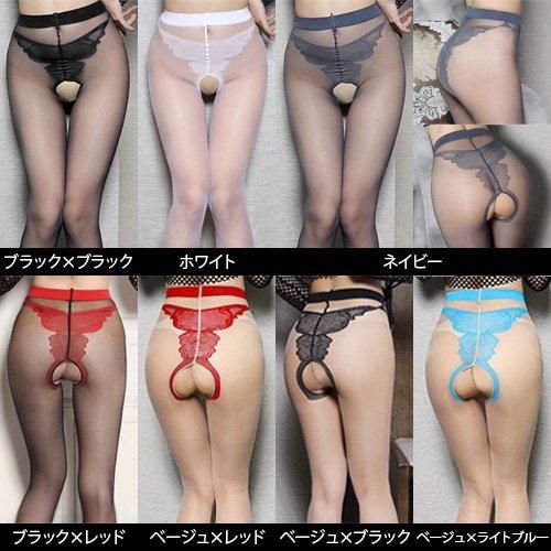 色香漂うオープンクロッチに繊細なバタフライが華を添えるストッキング ベビードール セクシーランジェリー